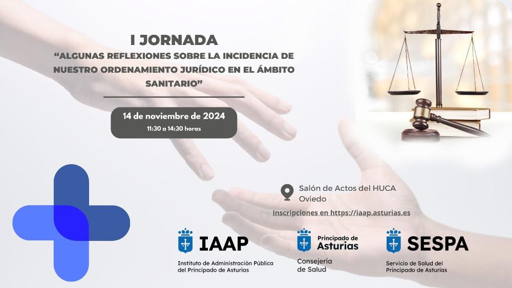 El Instituto Asturiano de Administración Pública “Adolfo Posada” en colaboración con la Consejería de Salud y el Servicio de Salud del Principado de Asturias (SESPA) organiza la I JORNADA: "ALGUNAS REFLEXIONES SOBRE LA INCIDENCIA DE NUESTRO ORDENAMIENTO JURÍDICO EN EL ÁMBITO SANITARIO".